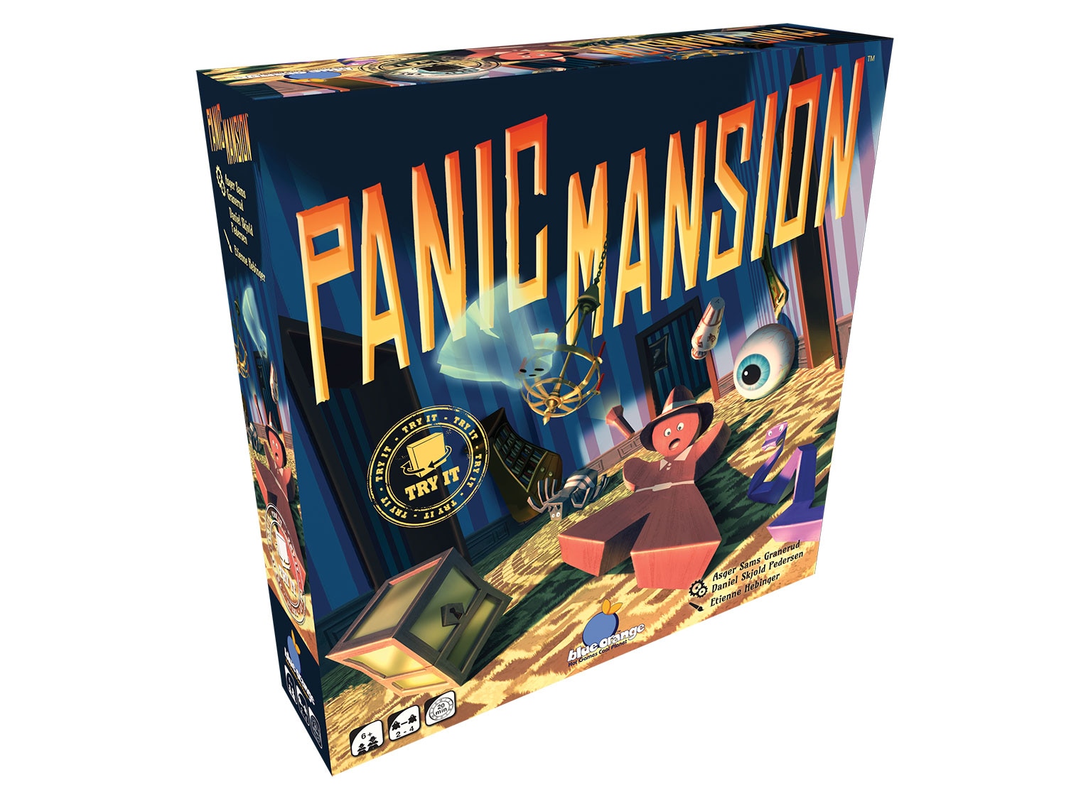 To win Panic Mansion, you must be the first to complete five challenges by gently tilting and shaking the box to place the correct objects into one room, following the information on the cards.