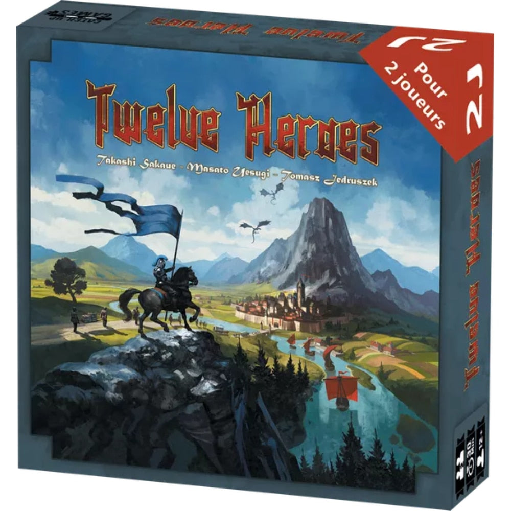 In the two-player game Twelve Heroes, players are landlords who lead twelve units and aim to obtain land cards which are located in three regions. These land cards give you victory points, and the first player who has gained seven points wins.