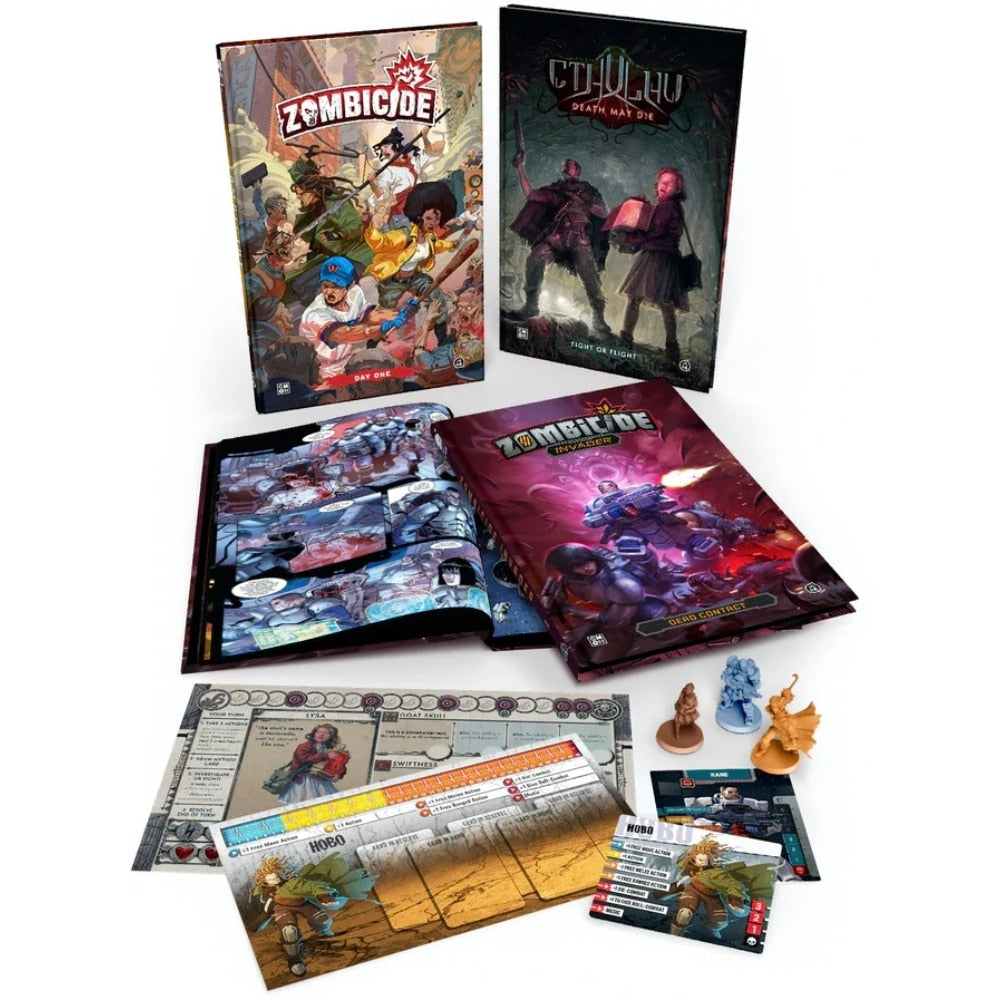 Now, we joined forces with great authors and illustrators from the comics world to take it to the next level and explore these settings like never before! Get ready to experience Zombicide, Cthulhu: Death May Die, and Zombicide: Invader in a whole new way, with beautifully illustrated, brilliantly written, hardcover graphic novels. And on top of it, get exclusive extra content not only for the comics but for the board games that inspired them!
