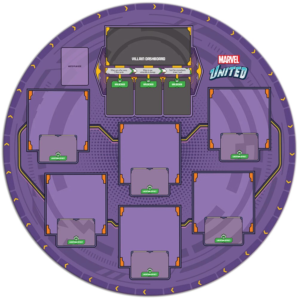 Looking to make sure your Marvel United components stay safe and organized while gaming? Look no further than the Multiverse Playmat. This accessory provides a helpful layout to guide play and place the cards and locations around the table. This new design has been constructed to increase usability and have a more compact design. This double-sided neoprene mat will be an invaluable addition to any Marvel United collection.