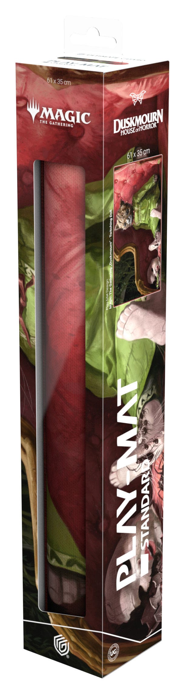 Discover haunted places and the eerie corners of Duskmourn on the play mats for Magic: The Gathering's new horror set. The 61x35cm play-mat protects your cards while playing and improves the gaming experience thanks to the anti-slip underside, while the stitched edges guarantee an even longer service life. The high-quality top side of the Play-Mat is printed with officially licensed Magic: The Gathering artworks by Warren Mahy, Cristi Balanescu, Bartek Fedyczak and Antonio José Manzanedo from Duskmourn: House of Horror.